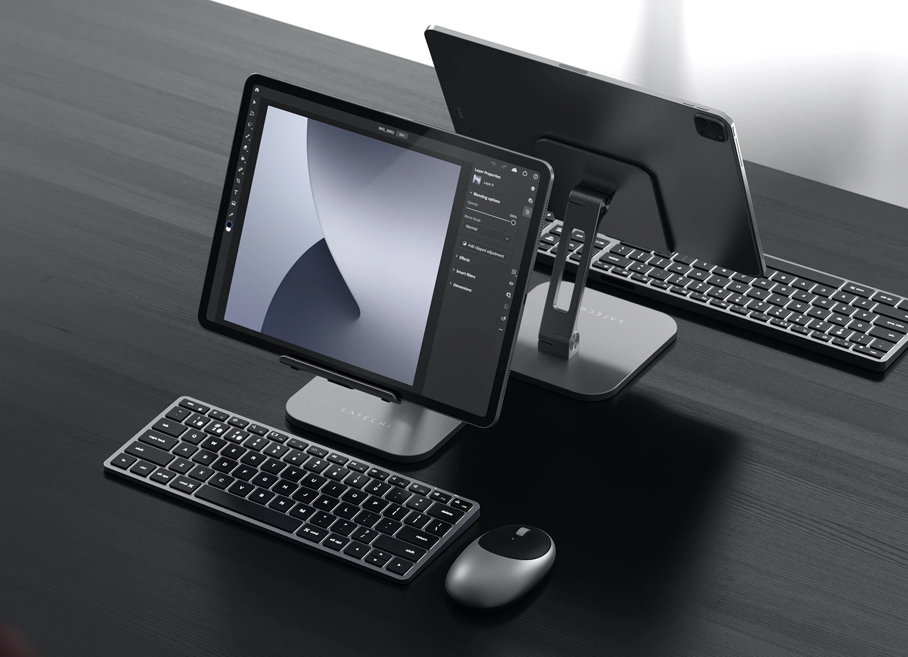 Еще одной новинкой компании стала стильная и удобная подставка для iPad, которая также выполнена из алюминия и позволит пользователю комфортно работать с планшетом. Шарниры подставки удобно регулируют углы наклона, и надежно фиксируют устройство. Подставка весит всего 500 грамм, она удобно складывается и ее можно без проблем взять с собой в путешествие или поездку.
