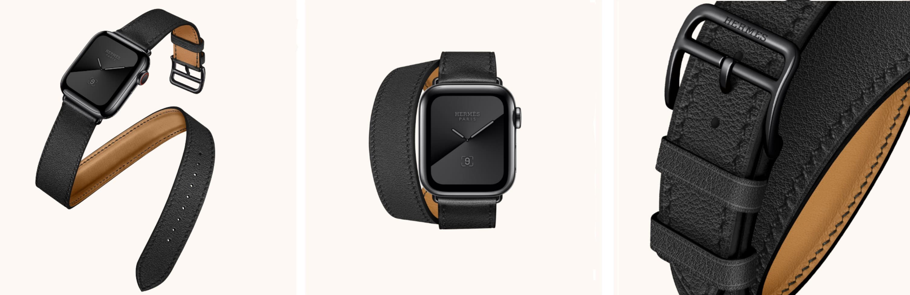 Эксклюзивная модель Apple Watch Hermes Series 5 в чёрном цвете будет ограниченна по времени и количеству. Корпус 44 мм из нержавеющей стали черный космос - Apple Watch Hermes Series 5, 44mm Stainless Steel Case with Etain Beton Swift Leather Single Tour , с длинным двойным кожаным ремешком - Noir Swift Leather Double tour будут поставляться в лимитированной коробке с черным спортивным ремешком и соответствующим циферблатом.