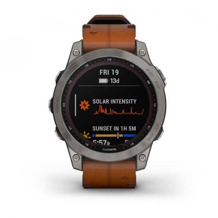 FENIX 7 Sapphire Solar титановый серый с коричневым кожаным ремешком