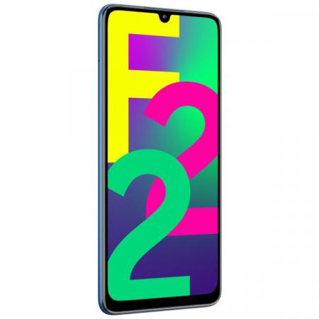 Samsung Galaxy F 22 был анонсирован в июле 2021 года, и через неделю он появился в продажах. Размеры телефона 160 × 74×9,4 мм и вес 203 г. Учитывая цену телефона, не было больших ожиданий относительно дизайна и материалов, из которых сделан телефон. Полностью выполненный из пластика, рекомендуется использовать защитный чехол, чтобы избежать скольжения из руки или кармана. На боковой стороне расположен слот для двух нано SIM карт.